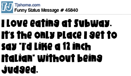 X is I love eating at Subway. It's the only place I get to say "I'd like a 12 inch Italian" without being judged.