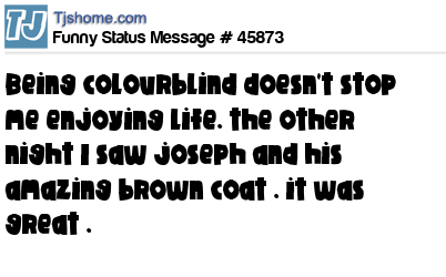 X says being colourblind doesn't stop me enjoying life. the other night I saw joseph and his amazing brown coat . it was great .