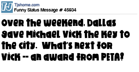 X Over the weekend, Dallas gave Michael Vick the key to the city. What's next for Vick -- an award from PETA?