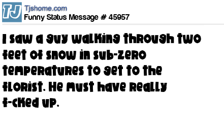 X I saw a guy walking through two feet of snow in sub-zero temperatures to get to the florist. He must have really f-cked up.