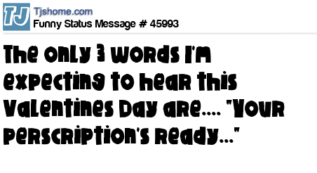 X The only 3 words I'm expecting to hear this Valentines Day are.... "Your perscription's ready..."