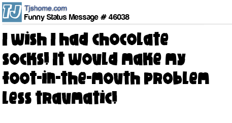 X is I wish I had chocolate socks! It would make my foot-in-the-mouth problem less traumatic!