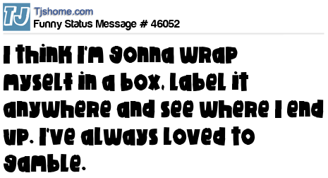 X I think I'm gonna wrap myself in a box, label it anywhere and see where I end up. I've always loved to gamble.
