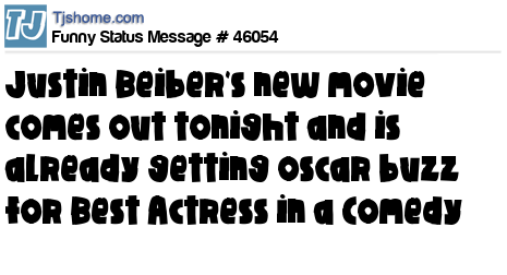 X Justin Beiber's new movie comes out tonight and is already getting oscar buzz for Best Actress in a Comedy