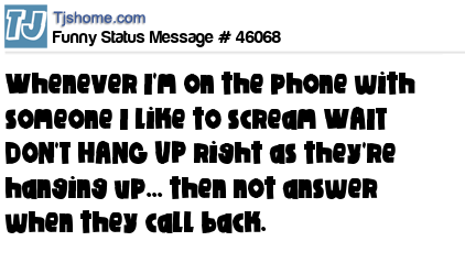 - # 128747 Whenever I'm on the phone with someone I like to scream "WAIT DON'T HANG UP" right as they're hanging up & then not answer when they call back