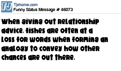 X is When giving out relationship advice, fishes are often at a loss for words when forming an analogy to convey how other chances are out there.