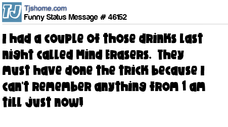 X is I had a couple of those drinks last night called Mind Erasers. They must have done the trick because I can't remember anything from 1 am till just now!