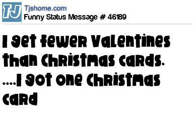 X I get fewer Valentines than Christmas cards. ....I got one Christmas card