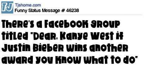 X There's a Facebook group titled "Dear, Kanye West if Justin Bieber wins another award you know what to do"
