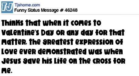 X thinks that when it comes to Valentine's Day or any day for that matter, the greatest expression of love ever demonstrated was when Jesus gave his life on the cross for me.