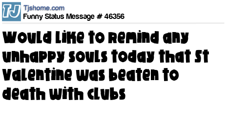 - # 201835 If you're alone on Valentine's day to feel better just remember how for the love of a woman St. Valentine was in imprisoned then beat to death with clubs!