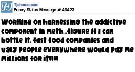 X is working on harnessing the addictive component in meth…figure if I can bottle it, fast food companies and ugly people everywhere would pay me millions for it!!!!