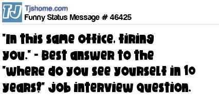 - # 82694 "Celebrating the 10 year anniversary working for this company!" - Best answer to the "where do you see yourself in 10 years?" job interview question. :)