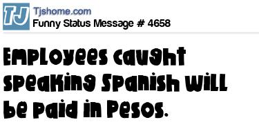 - # 5461 I went to a restaurant today and there was a big sign ---> "Employees caught speaking Spanish will be paid in Pesos."
