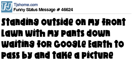 X Standing outside on my front lawn with my pants down waiting for Google Earth to pass by and take a picture