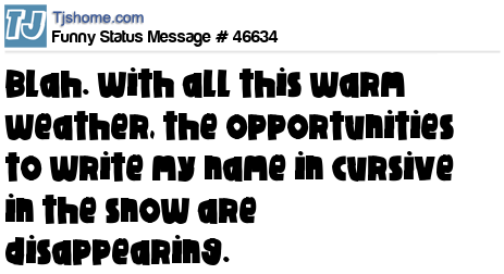 X blah. with all this warm weather, the opportunities to write my name in cursive in the snow are disappearing.