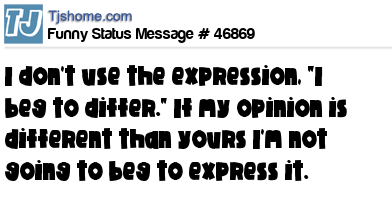 X I don't use the expression, "I beg to differ." If my opinion is different than yours I'm not going to beg to express it.