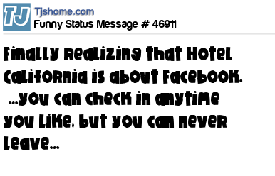 - # 87953 facebook..... its like The Hotel California... You can check in at any time... But you can't never leave!!!