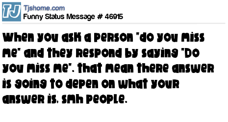 X when you ask a person "do you miss me" and they respond by saying "Do you miss me". that mean there answer is going to depen on what your answer is, smh people.