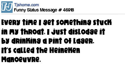 X Every time I get something stuck in my throat, I just dislodge it by drinking a pint of lager. It's called the Heineken Manoeuvre.