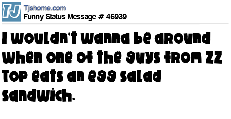 X is I wouldn't wanna be around when one of the guys from ZZ Top eats an egg salad sandwich.