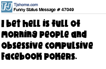 X I bet hell is full of morning people and obsessive compulsive Facebook pokers.