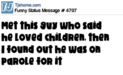 - # 33883 I just met a very nice man who said he loves children. Then I found out he was on parole for it.