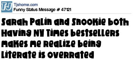 X says Sarah Palin and Snookie both Having NY Times bestsellers makes me realize being literate is overrated