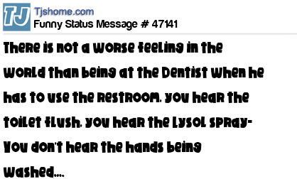 X is There is not a worse feeling in the world than being at the Dentist when he has to use the restroom, you hear the toilet flush, you hear the Lysol spray- You don't hear the hands being washed….