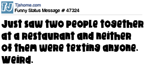 X says Just saw two people together at a restaurant and neither of them were texting anyone. Weird.