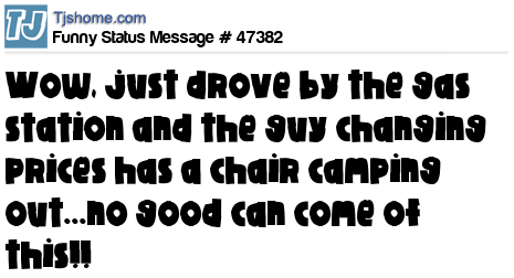 X Wow, just drove by the gas station and the guy changing prices has a chair camping out...no good can come of this!!