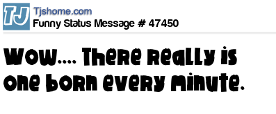 - # 19950 They say there's a sucker born every minute but I'd be more curious to find out at what rate swallowers are born.