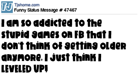 X is I am so addicted to the stupid games on FB that I don't think of getting older anymore, I just think I LEVELED UP!