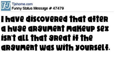 X says I have discovered that after a huge argument makeup sex isn't all that great if the argument was with yourself.