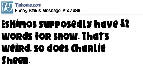 X is Eskimos supposedly have 52 words for snow. That's weird, so does Charlie Sheen.