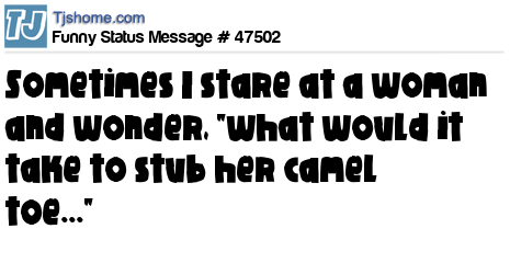 X sometimes I stare at a woman and wonder, "what would it take to stub her camel toe..."