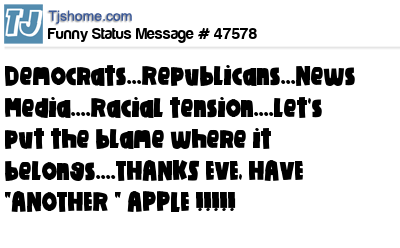 X is Democrats...Republicans...News Media....Racial tension....let's put the blame where it belongs....THANKS EVE, HAVE "ANOTHER " APPLE !!!!!