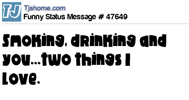 - # 19537 Drinking, smoking and fatty foods are taking too long to kill me. I had to fall in love again to speed-up the process.