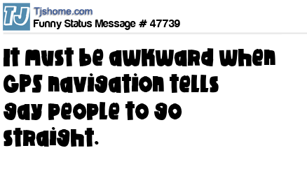 - # 183960 It must be awkward when GPS tells gay people to go straight