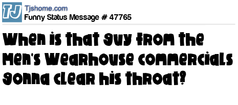 X When is that guy from the Men's Wearhouse commercials gonna clear his throat?