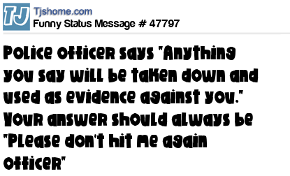 - # 161350 Police officers say anything you say will be taken down and make be used as evidence .. your answer should always be please officer don't hit me again