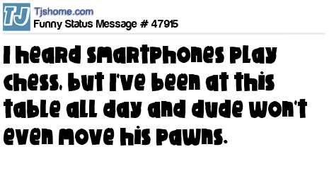 X I heard smartphones play chess, but I've been at this table all day and dude won't even move his pawns.