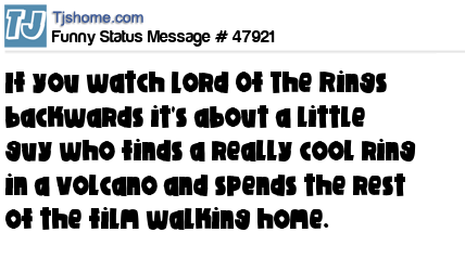 - # 20413 If you watch the Lord of the Rings backwards, it's about a little guy who gets a cool ring from a volcano and spends the rest of the time walking home.