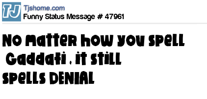 X no matter how you spell Gaddafi , it still spells DENIAL