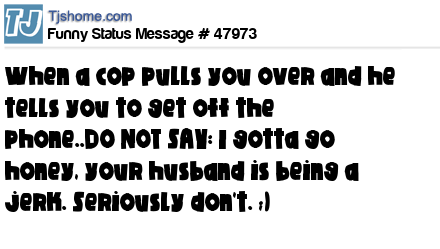 X when a cop pulls you over and he tells you to get off the phone..DO NOT SAY: I gotta go honey, your husband is being a jerk. Seriously don't. ;)