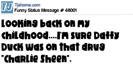 X Looking back on my childhood....I'm sure Daffy Duck was on that drug "Charlie Sheen".