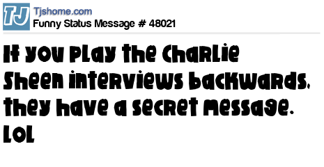 X if you play the Charlie Sheen interviews backwards, they have a secret message. lol