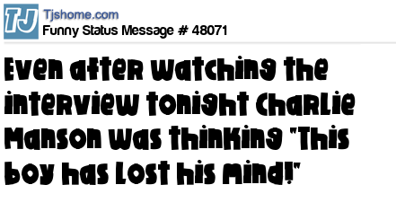 X Even after watching the interview tonight Charlie Manson was thinking "This boy has lost his mind!"