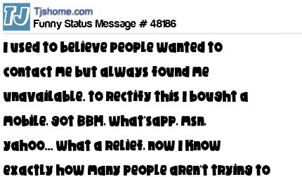 X is I used to believe people wanted to contact me but always found me unavailable. to rectify this I bought a mobile, got BBM, what'sapp, msn, yahoo... what a relief, now I know exactly how many people aren't trying to get in touch with me...