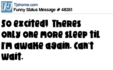 X is so excited! Theres only one more sleep til I'm awake again. Can't wait.